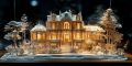 Exquisite Paper Maché Model of Pittock Mansion Amidst Winter Foliage
