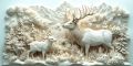 Majestic Roosevelt Elk and Young Amidst Snowy Mount Hood Landscape
