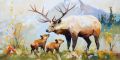 Majestic Elk and Fawns Against Vivid Mountainous Backdrop