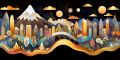 Enchanting Sunrise Over Majestic Mountain and Forest in Paper Art