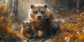 Golden Hour in the Forest: A Mother Bear and Her Cubs