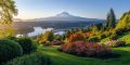 Majestic Mount Hood Overlooking Lush Oregon Forests and Lakes