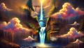 Enigmatic Night Sky Over Art Deco Tower in Imaginative Cityscape