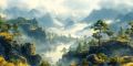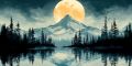 Ethereal Reflections of Mount Hood in a Dreamlike Watercolor Landscape