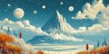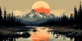Majestic Peaks Meet Vibrant Skies in Minimalist Landscape Art