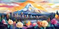 A Serene Watercolor Fusion of Portland’s Iconic Landscapes and Cityscape