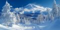 Frosted Trees and Majestic Mountain Under a Serene Blue Sky