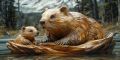 Intricate Paper Mache Depiction of Beavers in a Serene Landscape