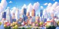 Enchanting Portland Skyline Surrounded by Blossoming Roses