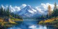 Artistic Fusion of Crater Lake in Klimt Style: A Winter to Fall Transition