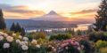 Sunset Over Portland: A Panoramic View of Mount Hood and Rose Gardens