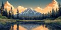 Majestic Mount Hood Reflected in Mirror Lake: A Street Art Interpretation