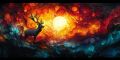 A Majestic Elk Emerges from a Fire-Like Blaze in Vibrant Colors
