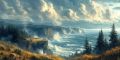 Majestic Coastal Cliffs Overlook Raging Pacific Waves