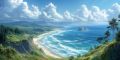 Serene Coastline View Under Cloud-Speckled Blue Skies