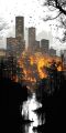 "Fiery Sunset Over Portland's Silhouette: An Artistic Vector Illustration"