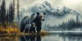 Majestic Elk Standing by a Serene Mountain Lake at Dawn