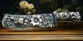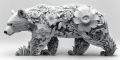 Intricate Paper Mache Black Bear Sculpture in Floral Motif