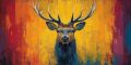Majestic Elk Portrait Against a Vibrant Spectrum of Colors