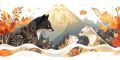 Mother Bear and Cub Amidst Blooming Flowers Overlooking Mount Hood