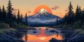 Serene Sunset Over Majestic Mount Fuji in Ukiyo-e Style