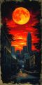 Crimson Moon over Portland: A Mysterious Art Deco Vision