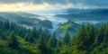 Tranquil Sunset Over the Cascading Mountain Ranges and Forest