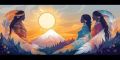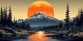 Epic Sunrise over Mount Hood in a Mystical Ukiyo-e Style Artwork
