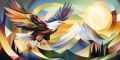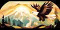 Majestic Bald Eagle Soaring Over Stylized Mountain Landscape