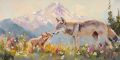Vibrant Palette Knife Art Capturing Beaver and Young Against Mount Hood