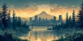 Simplistic Elegance of Portland's Skyline and Mount Hood in Art