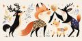 Enchanting Illustrated Scene of Fox Family with Mystical Deer Friends