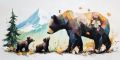 Ethereal Visions of Wildlife: A Black Bear and Cubs in Artistic Light