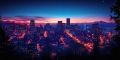 Twilight Gleams on Portland's Futuristic Skyline amid Emerald Woods