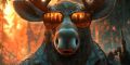 Moonlit Silhouettes: Wolves and Wildflowers Against Portland Skyline