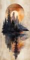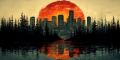 Enigmatic Red Sun Setting Over Serene Portland Mountain Lake