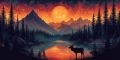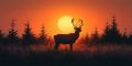 Majestic Reindeer Silhouette Against a Fiery Sunset Sky