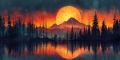 Vintage Style Illustration of Majestic Hood Mountain at Sunset