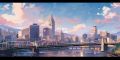 Colorful Watercolor Interpretation of Portland's Vibrant Skyline