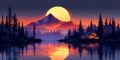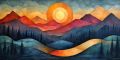 Geometric Serenity: A Cubist Sunset Over Columbia River Gorge