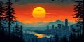 Autumn Radiance Over Portland's Skyline: A Colorful Vector Art Interpretation