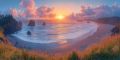 Ethereal Dawn: Captivating Sunrise Over Rugged Oregon Coastline