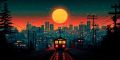 Dystopian Sunset Over Portland's Silhouette – A Vibrant Artistic Expression