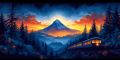 Autumn's Embrace: A Vivid Rendering of Mt. Hood and Its Surroundings