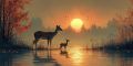 Majestic Encounter: Eagle and Fawn Amidst Autumn's Canvas