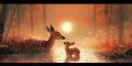 Enchanting Sunset Encounter: A Deer and Fawn in Misty Woods