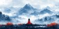 Captivating Art of a Girl in Red Overlooking Misty Mountains