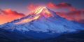 Fiery Sunset Illuminates Mount Hood's Snow-Capped Peaks