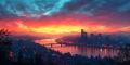 Sunset Over Portland: A Serene, Sustainable Cityscape in Art