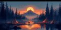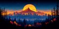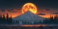 Tranquil Evening at a Serene Lakeside with Mountain and Giant Moon